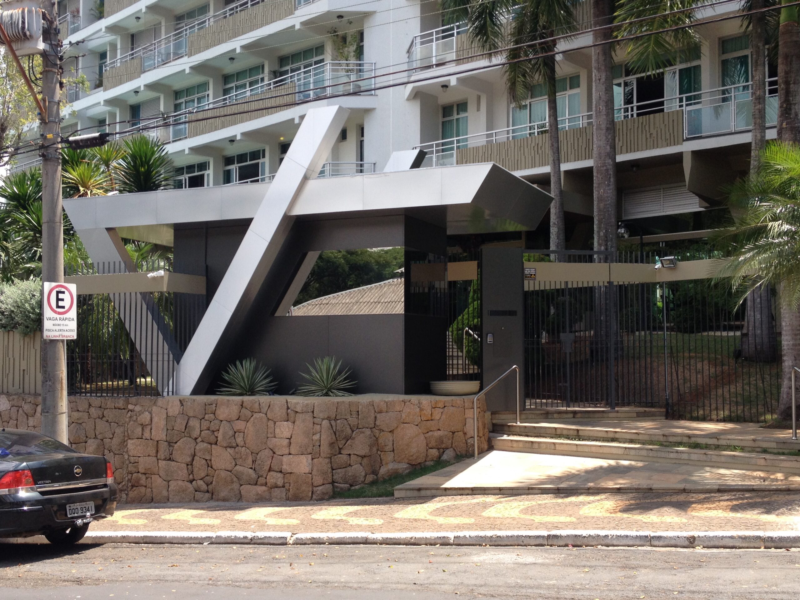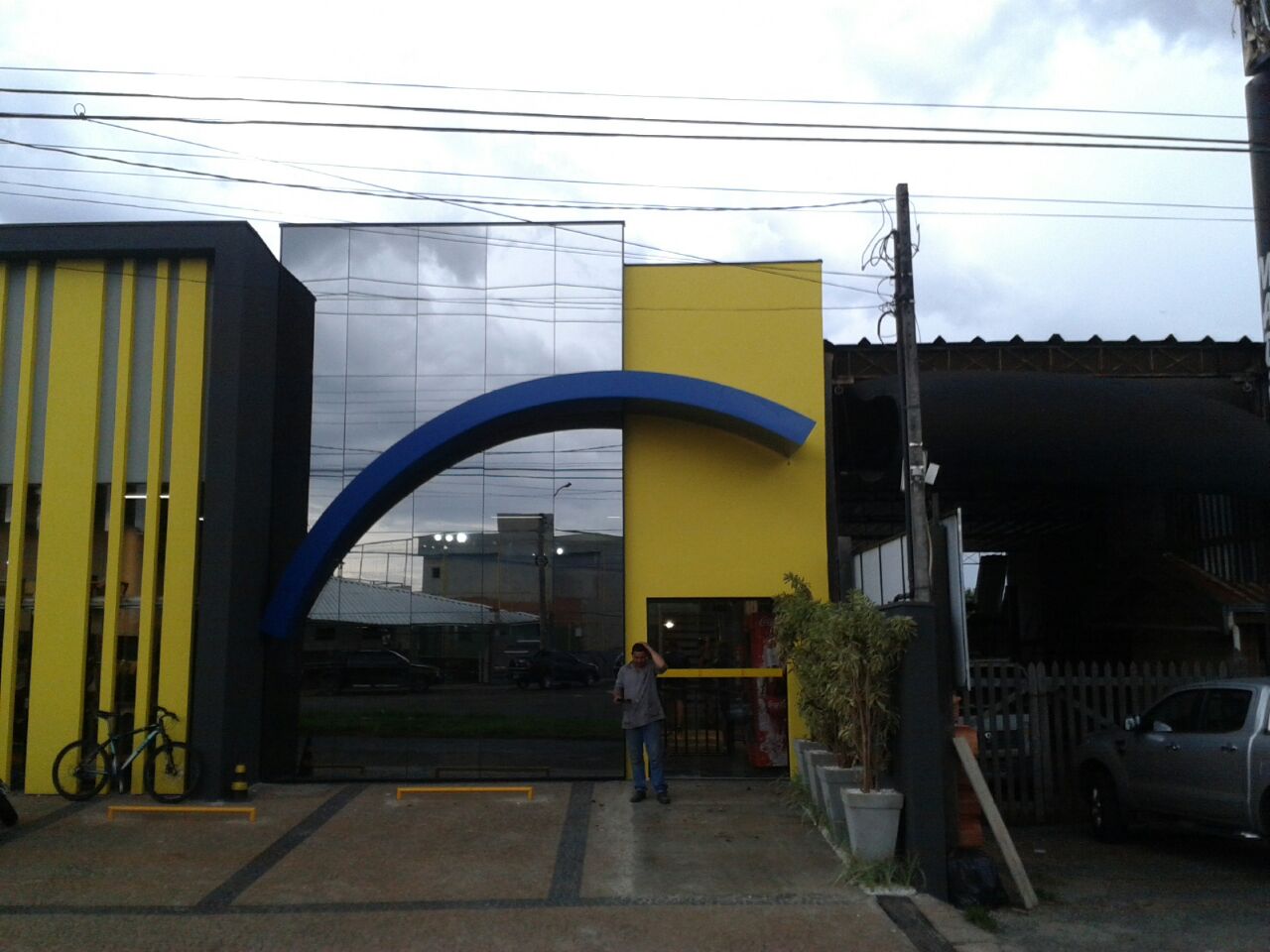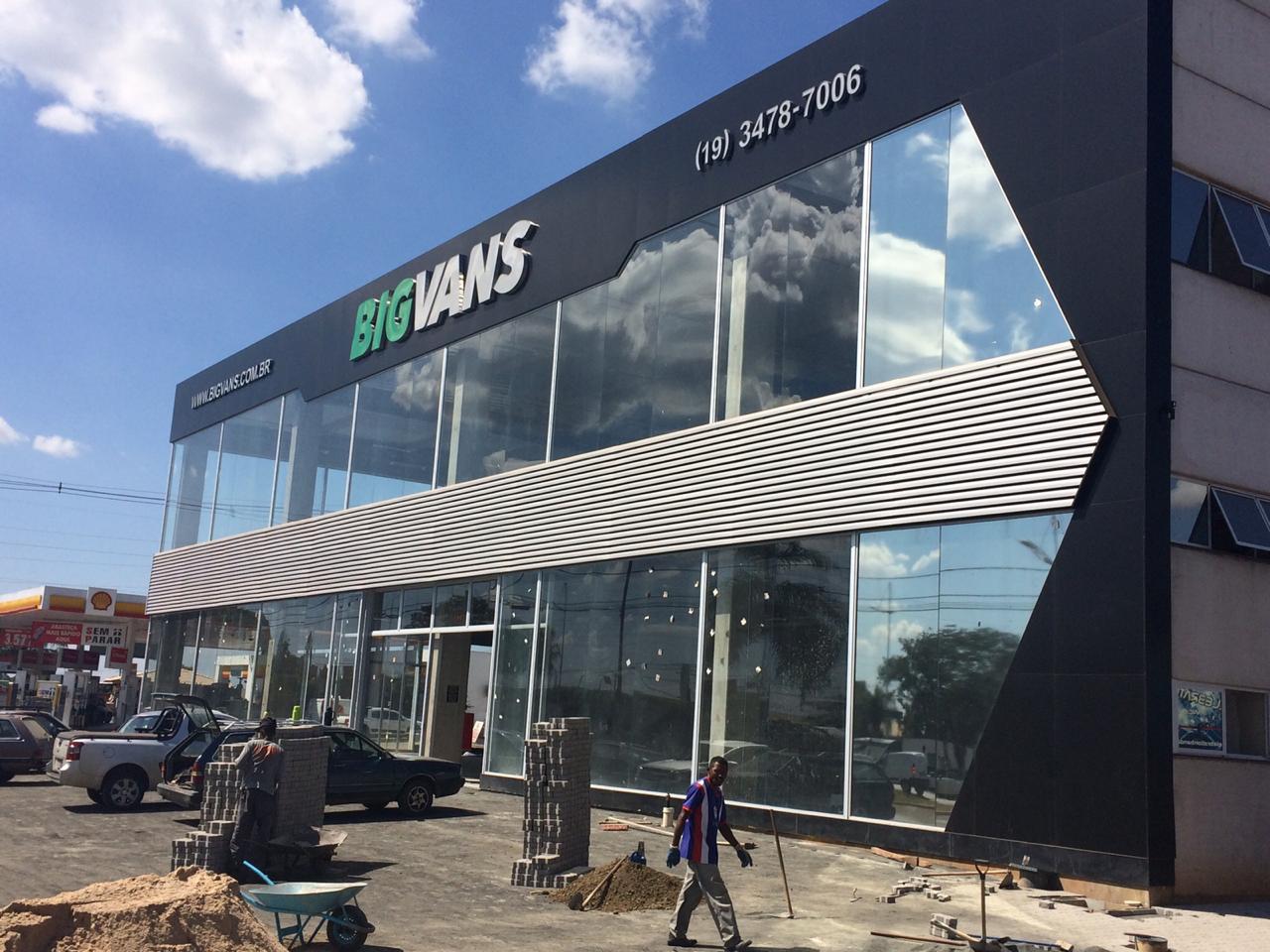- Composição com fachadas em vidro e caixilhos entre vãos