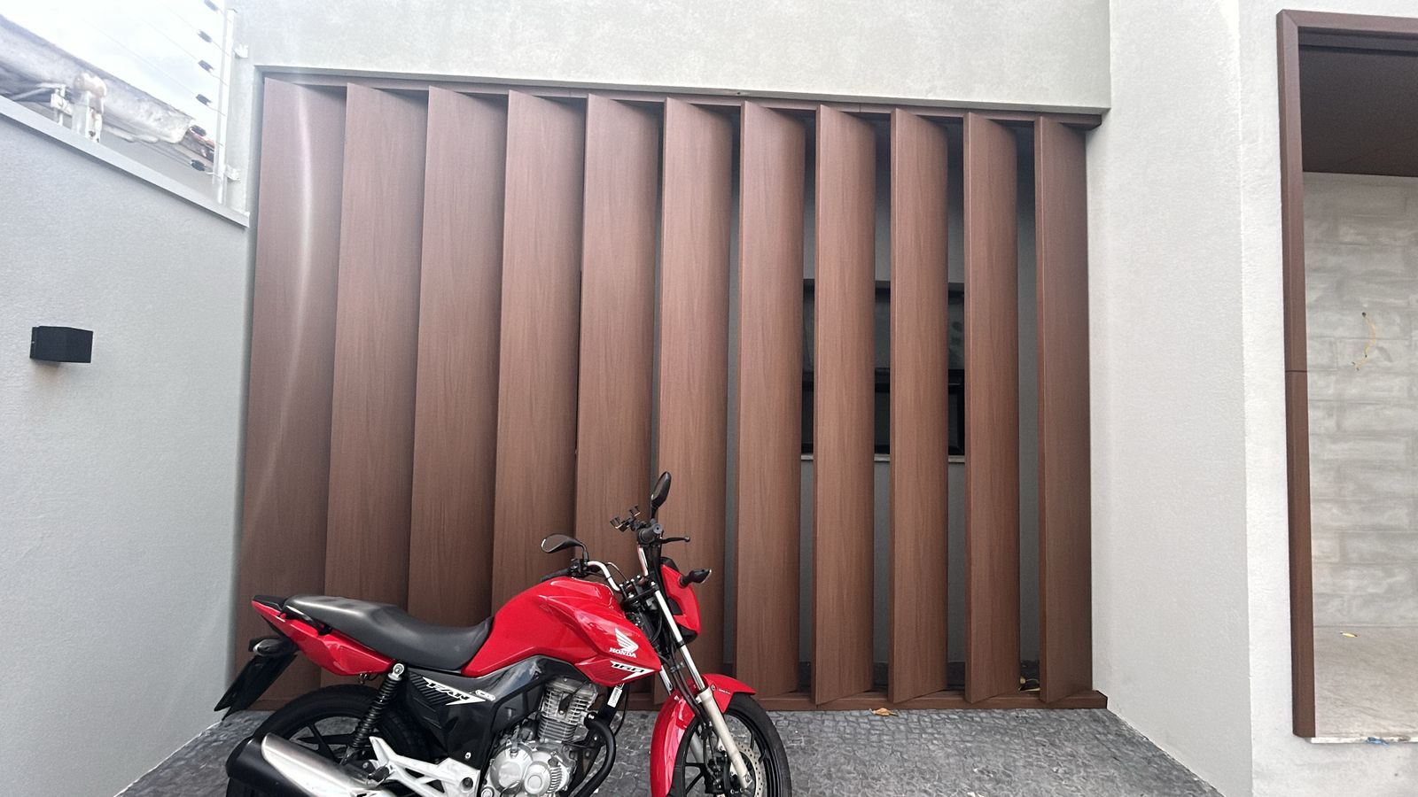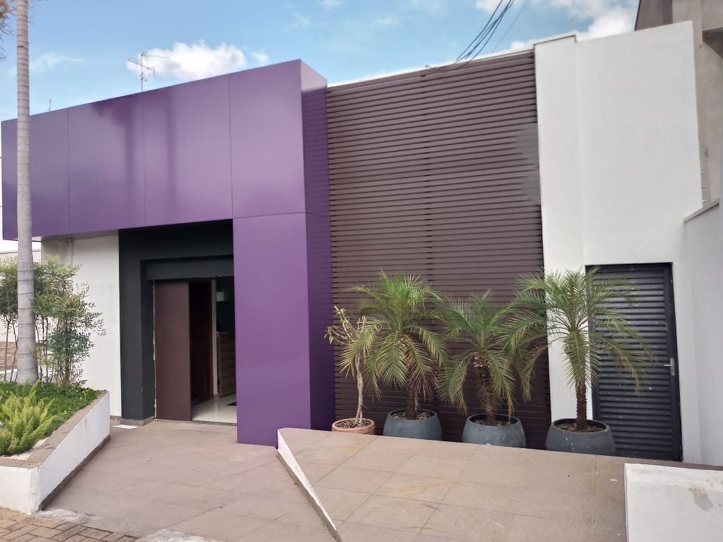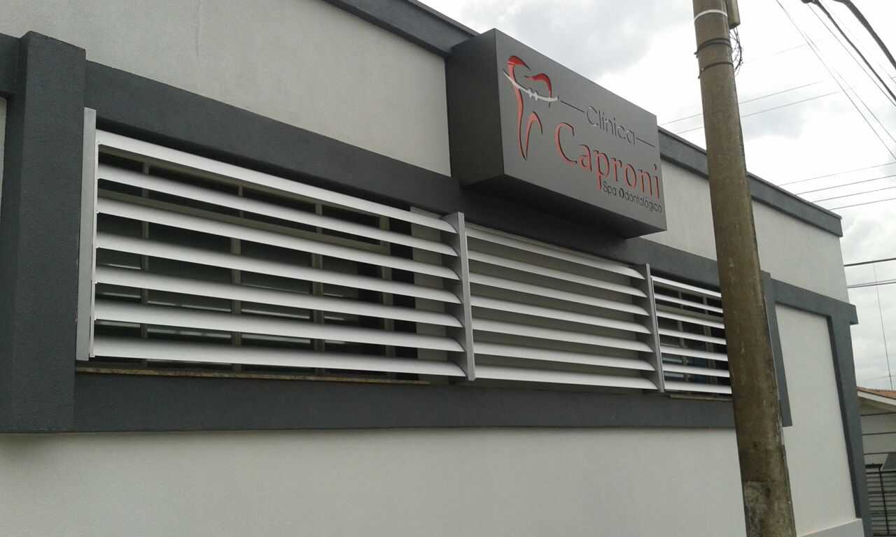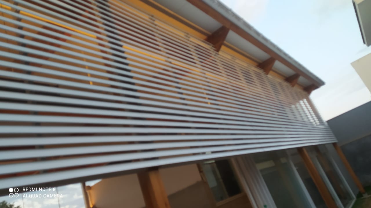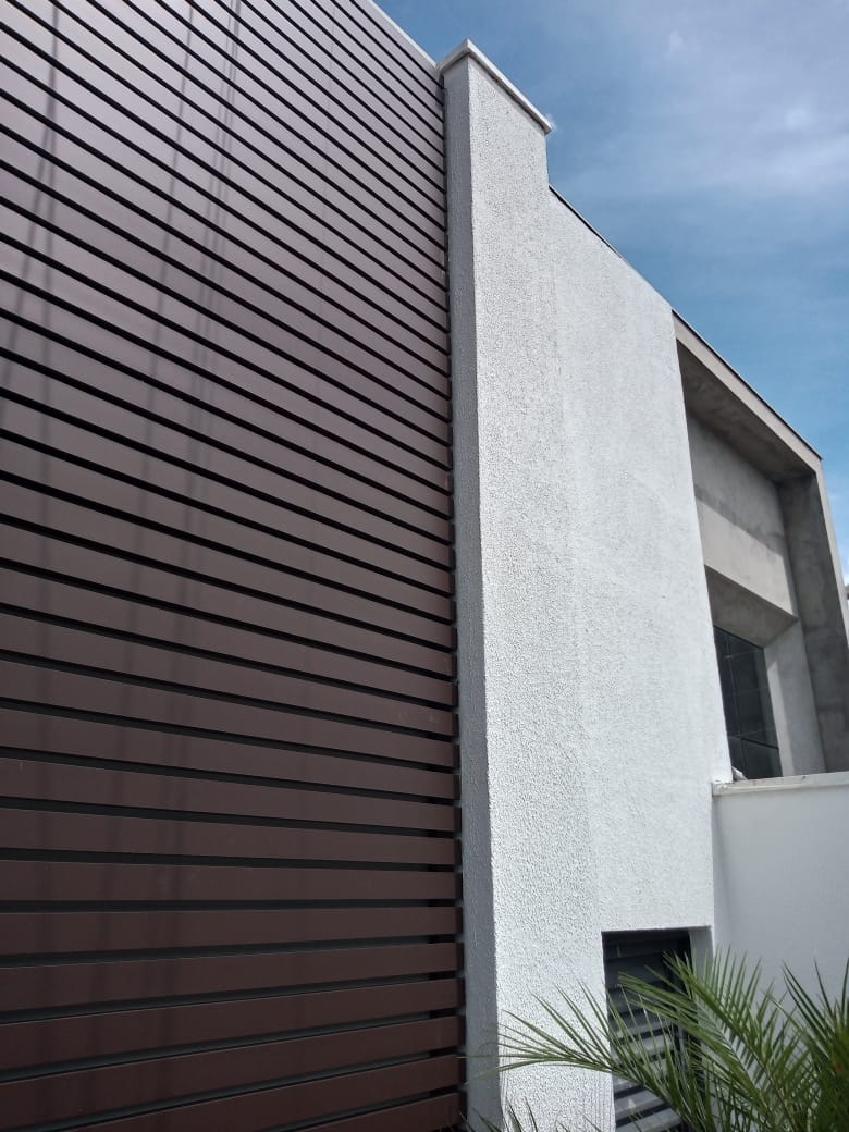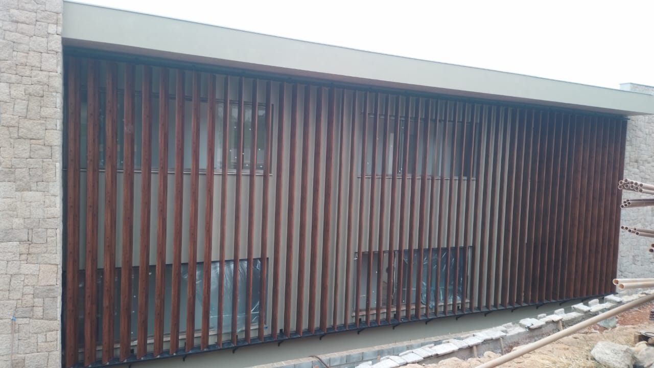 Brise linear e fixo, com bordas arredondadas, composto por painéis clicados ao porta painel.